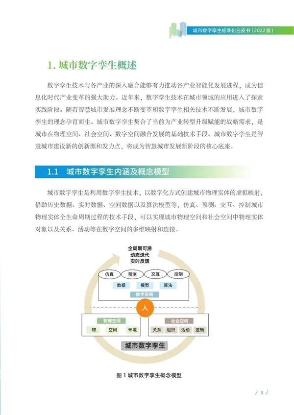 白皮书认为,城市数字孪生是利用数字孪生技术,以数字化方式创建城市物理实体的虚拟映射,借助历史数据、实时数据、空间数据以及算法模型等,仿真、预测、交互、控制城市物理实体全生命周期过程的技术手段,可以实现城市物理空间和社会空间中物理实体对象以及关系、活动等在数字空间的多维映射和连接。