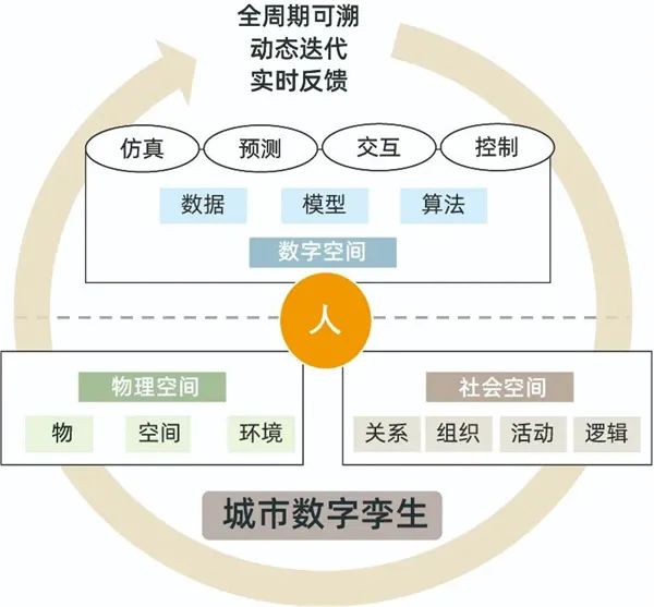 城市数字孪生通过在数字空间对城市物理空间和社会空间进行全要素表达、全过程呈现、全周期可溯,实现城市全面感知、虚实交互、智能决策、精准控制,推动城市智能化、智慧化发展。