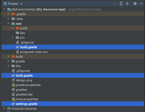 典型的 Android 项目会包含一个顶层 Gradle 构建文件。Android 项目中的每个模块又分别有一个 Gradle 构建文件。在示例项目中,我仅有一个应用模块。