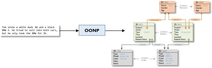 OONP 框架将解析过程转化为决策序列:按照文本阅读顺序做出各种离散动作,形成能够表征已读文本的本体图,模仿了人理解文本的认知过程。