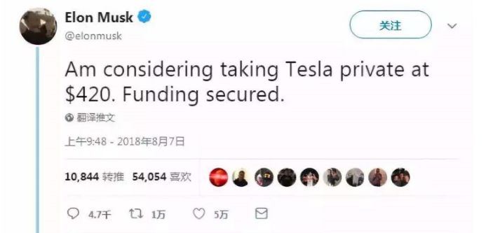 不过,今天盘中马斯克发的一条推文再次让人大跌眼镜。马斯克称正在考虑私有化特斯拉,并且已经有资金保障了。
