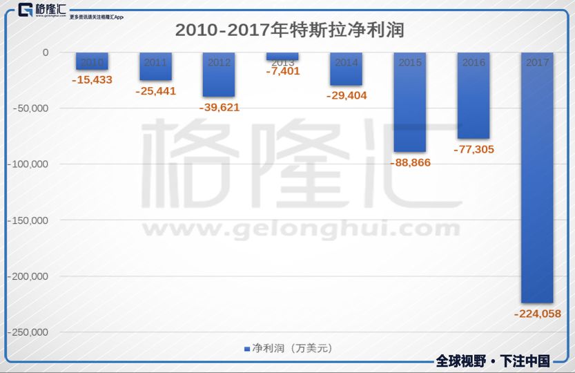 2010年6月,特斯拉在纳斯达克完成IPO,而在上市前几天,特斯拉才被媒体爆出已经濒临破产。上市以来,特斯拉仅一个季度实现了盈利,在2013年的第一季度实现了1125万美元的净利润。资金紧张一直是萦绕在特斯拉头上的一朵乌云,度过前期的研发瓶颈,烧钱其实才刚刚开始,生产线、人工、基础设施,哪一个都需要大量的资金。从2010年至2017年,其生产规模不断扩张,随之而来的是,亏损的不断扩大,仅2017年就录得超22亿美元的亏损。