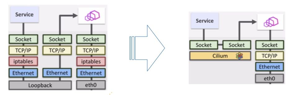 比如在 Cillium 容器网络中,可以利用 eBPF/XDP 等操作系统和底层网络能力,将应用层的服务控制能力(如 Kube-Proxy 提供的 service, network policy)下沉到操作系统内核和网络层解决,并优化了 Service Mesh 数据链路,减少上下文切换和数据拷贝,有效地减少了性能开销。