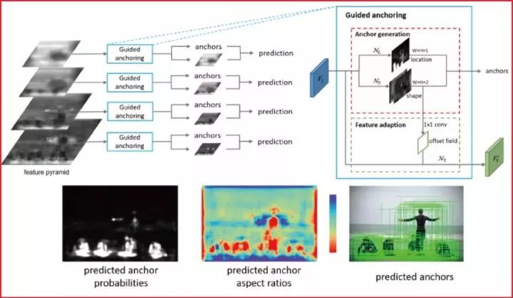 本文反思了这一关键步骤,我们提出了一种基于特征指导的动态锚点框生成算法,该算法利用语义特征来指导锚点框生成的过程,具有高效率和高质量的特点。本算法可以同时预测目标物体中心区域和该区域应产生的锚点框的大小和长宽比,以及根据锚点框的形状来调整特征,使特征与锚点框相吻合,从而产生极高质量的动态锚点框。