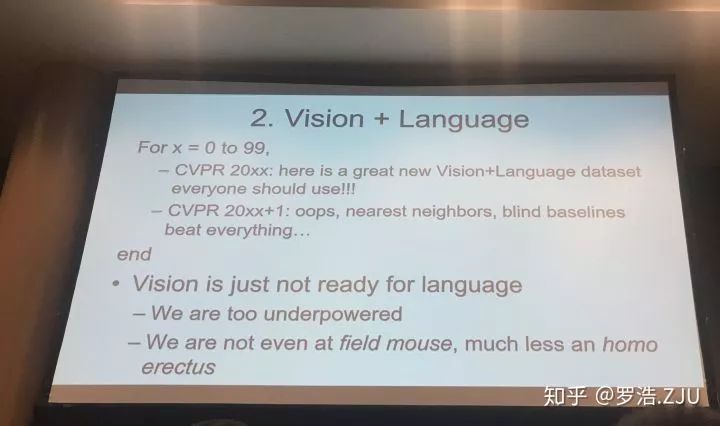 视觉问题,由三大块组成:图像分割、三维重建、模式识别。目前这个行业的有效进展,离彻底解决视觉,大约只完成了30%左右,所以还有很多事情可做,但真的深入进去,会发现很难找到一个研究方向。比如李飞飞几年前就已经“遥遥领先”地在研究文字转视频了,那你再研究图像分割,是不是有点太落伍了?到时候论文能否发表都成问题,按时毕业、职称晋升,这才是最重要的事。所以选题都把眼光都放在高大上的、能吸引眼球的课题上。