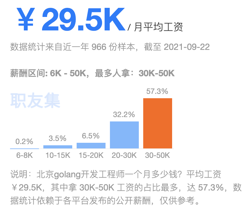 虽然 Python 多才多艺,应用更广泛,但 Go 开发工程师的需求数量并不比 Python 开发少,最近两年开出的薪资甚至也比 Python 工程师高些。