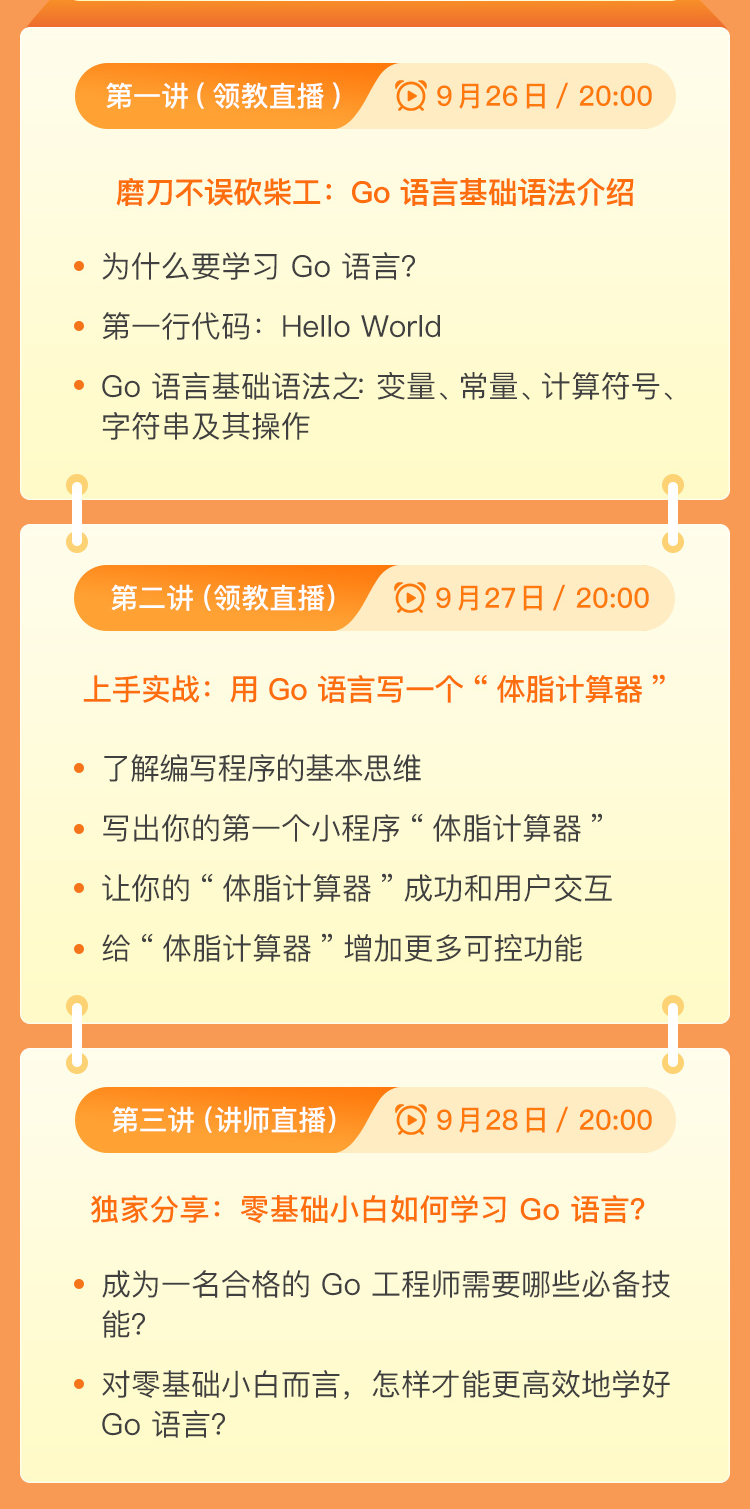 至于为什么,你去深入了解 Go 语言的应用和特性就会明白。这里推荐你看极客时间的 Go 语言入门课,从理论到实操,