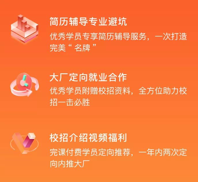 课程全程出勤 + 完成每次课后作业,即可成为本期的优秀学员,能免费获得 2021 年校招专属就业大礼包!