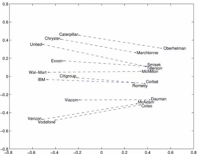 单词之间的几何图形。通过观察上述单词,我们可以看出公司和其 CEO 之间内在的几何关系。