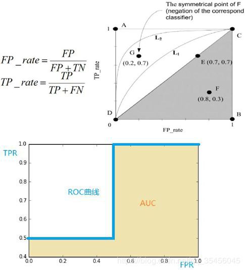 ROC 曲线 X 轴为 false positive rate(FPR),Y 轴为 true positive rate(TPR):