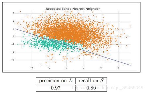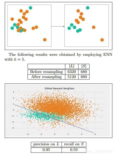 Edited Nearest Neighbor (ENN):将那些 L 类的样本,如果他的大部分 k 近邻样本都跟他自己本身的类别不一样,我们就将它删除。