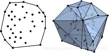 在多维空間中有一群散布各处的点,「凸包」是包覆这群点的所有外壳当中,表面积容积最小的一个外壳,而最小的外壳一定是凸的。