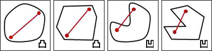 「凸」的定义是:圆形內任意亮点的连线不会经过圆形外部。「凸」並不是指表面呈弧状隆起,事实上凸包是由许多平坦表面组成的。