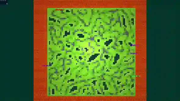 玩家(代理)可以加入任何可用的服务器(环境),每个都会包含一个可配置大小、且自动生成的基于图块的游戏地图。一些障碍块,例如森林和草,是可穿越的;其他的如水和实心岩石,则不能穿越。