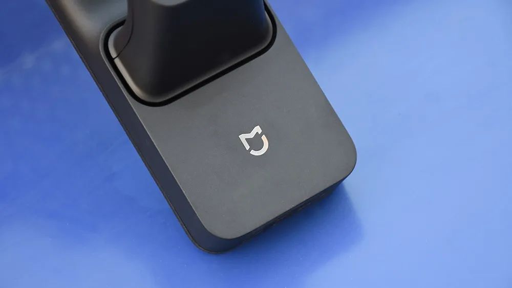 最下方是经典的米家盾牌标,相信大家都不陌生。外侧面板底部还预留有 Micro USB 应急供电接口以及左右两侧的扬声器开孔。
