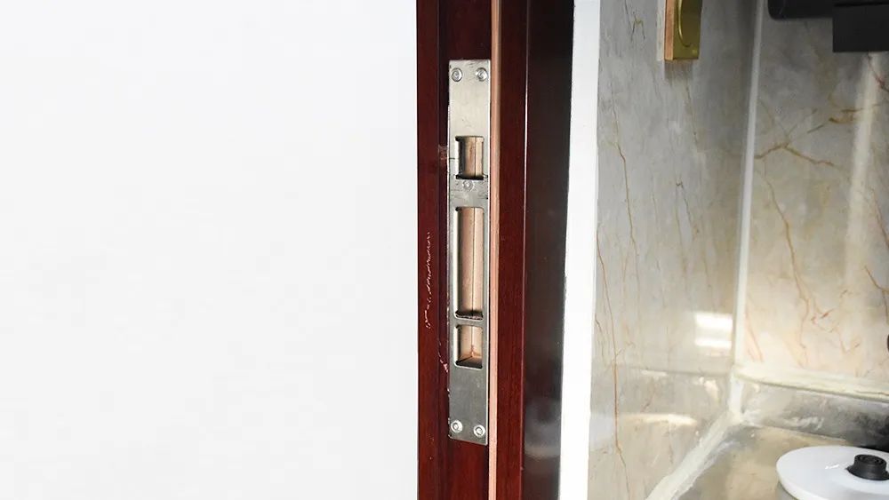 值得一提的是,米家推拉式智能门锁采用了机械自弹锁体,关门时触发上方的斜插锁舌自动落锁,锁舌会弹出,无需刻意操作。