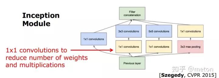 第一种方式:1x1卷积的应用。在大卷积核前应用1X1卷积,可以灵活地缩减feature map通道数(同时1X1卷积也是一种融合通道信息的方式),最终达到减少参数量和乘法操作次数的效果。