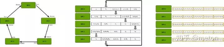 而 Ring AllReduce可以将参数通信分散到各个GPU,经过一循环的数据传递和计算后,得到正确结果。通过Ring AllReduce这种比较巧妙的方式,每个设备的负载更加均衡,基本上可以实现当GPU并行卡数的增加,实现计算性能的线性增长。一些相关的分布式训练库: horovod baidu-allreduce