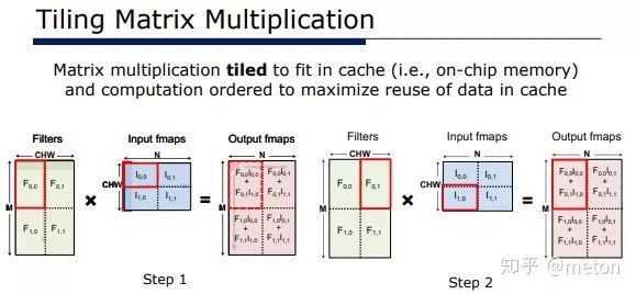 矩阵分块可以更好地匹配各级cache的大小,这样cache局部性更好,访存时的miss率更低。除此之外,对矩阵的内存数据布局进行重排布来增加待计算数据放置的连续性,这样取数的时候cache miss率也会更低,像常见的 NCWH 和 NWHC 排布模式都是这方面考虑。