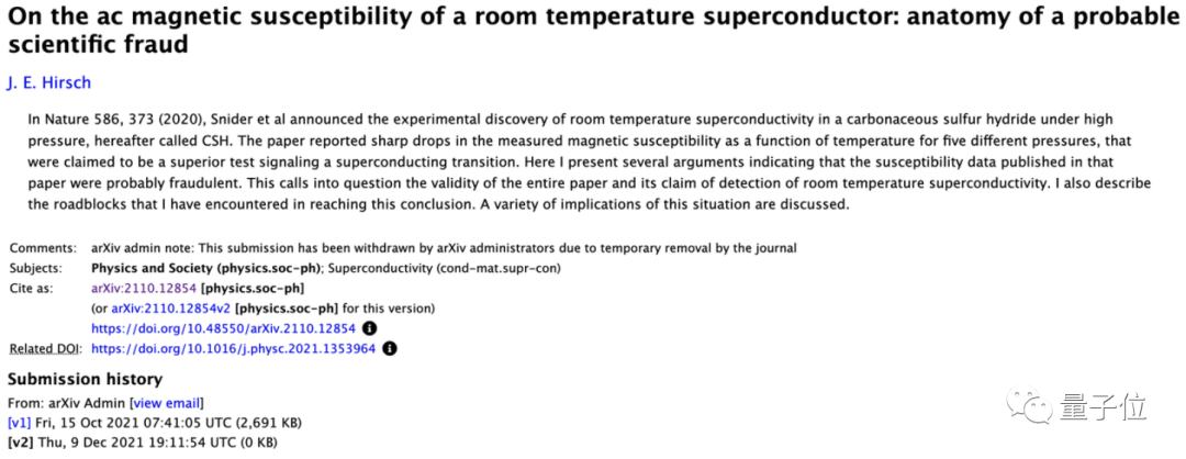 2021年,赫西针对这种超导体的完全抗磁性、磁化率等问题提出质疑,将自己的观点、验证数据的过程、中间遇到了哪些阻碍都写成论文发表在arXiv、Physica C上,很快引起轩然大波。