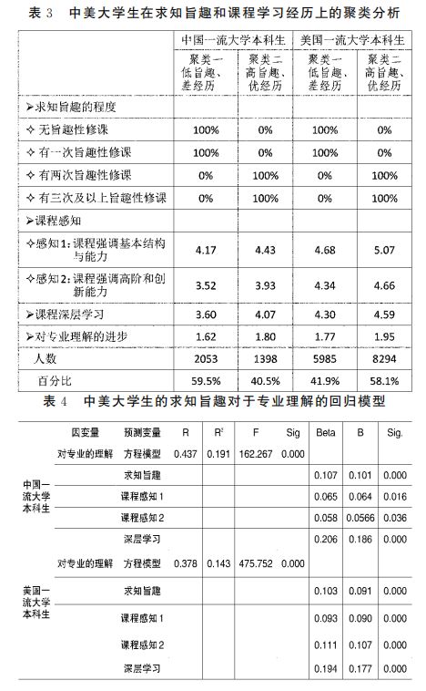 1.中美一流大学本科生在求知旨趣和课程学习经历质量上的差异