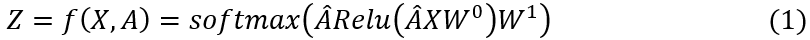 其中,X为每个节点的特征,图的结构信息以矩阵的形式加入到神经网络当中,