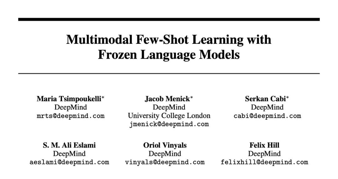 Vision Encoder 编码得到图片特征,再映射为 n 个 prompt 向量加到文本表示之前。Language Model 使用了一个 7 billion 参数规模的预训练好的模型;Vision Encoder 使用了 NF-ResNet-50。