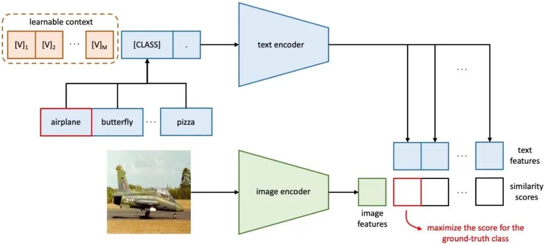 固定视觉编码器和文本编码器,只更新 prompt 向量。