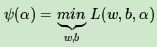 现在我们来看将w替换为α的表达式以后的优化函数ψ(α)的表达式:
