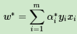 只要我们可以求出上式极小化时对应的α向量就可以求出和w和b了。在这里,我们假设通过SMO算法,我们得到了对应的α的值α∗。可以求出对应的w的值: