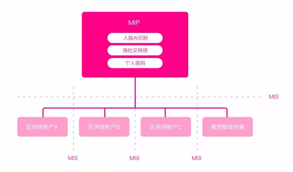 现行的区块链登陆方案大多仅凭借传统密钥,美图的 MIP 则更为立体,包括人脸AI识别、社交网络和个人密钥,进一步确保账户安全。通过 MIP 还可管理所有的区块链账户,但同时保证账户间的分隔,让公钥或私钥不被关联至其他账户,在便捷管理的同时确保账户安全。