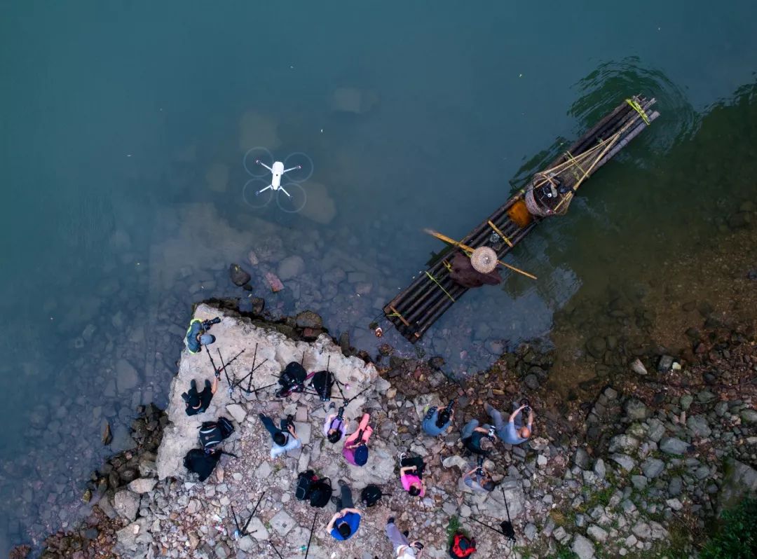 “御” Mavic Pro的AEB包围曝光功能,后期五张叠加合成,能获得较纯净画质的作品。一些摄影爱好者,喜欢在漓江上摆拍渔翁撒网,通常年轻力壮的渔翁,撒网的姿态往往要更加好看些。不过,用无人机上升到一定的高度之后,逆光下的漓江渔火的动作细节其实已经不是那么重要了,渔翁的一顿一挫和氤氲晨雾中的山水,诗情画意不过如此吧!