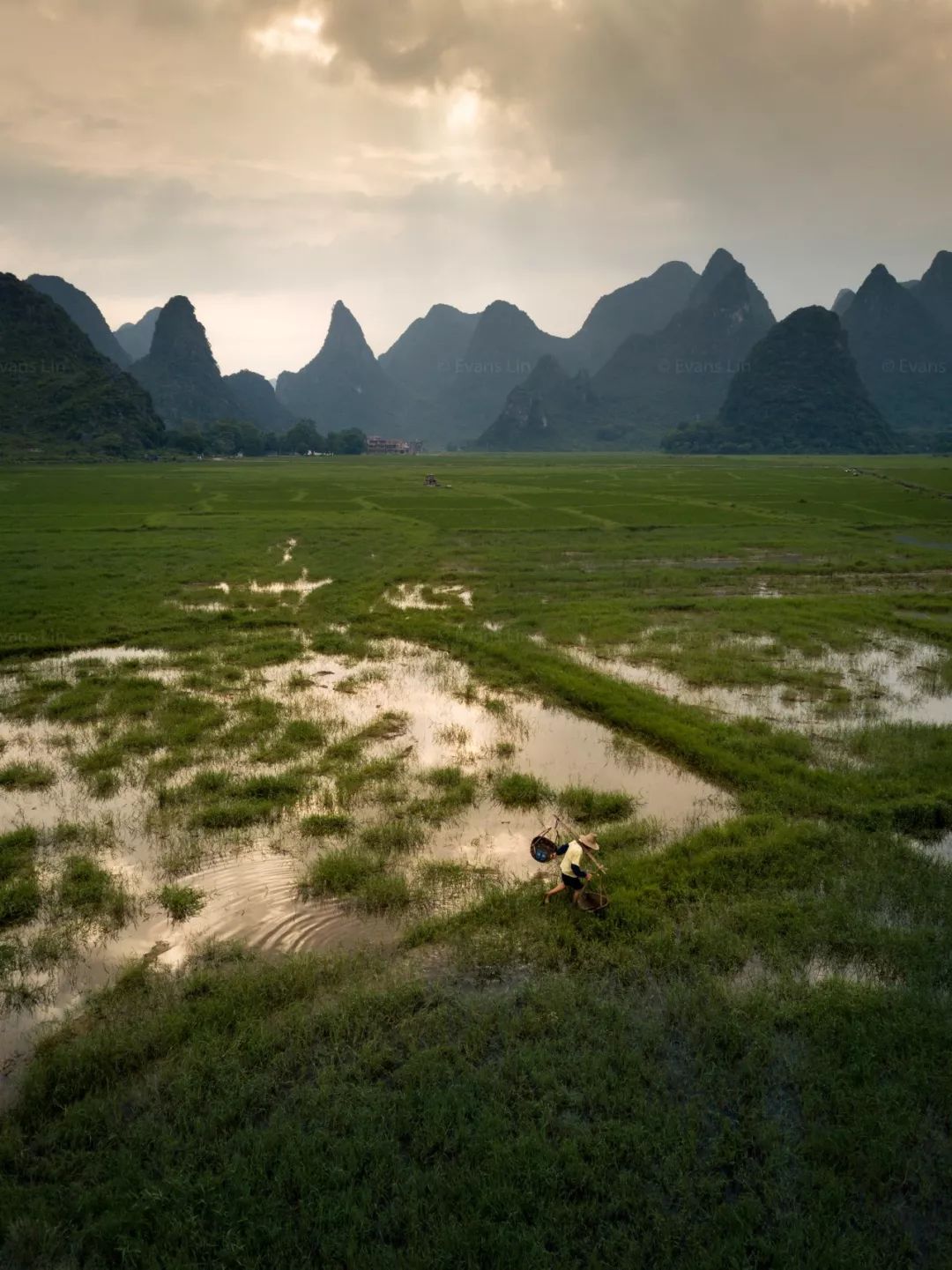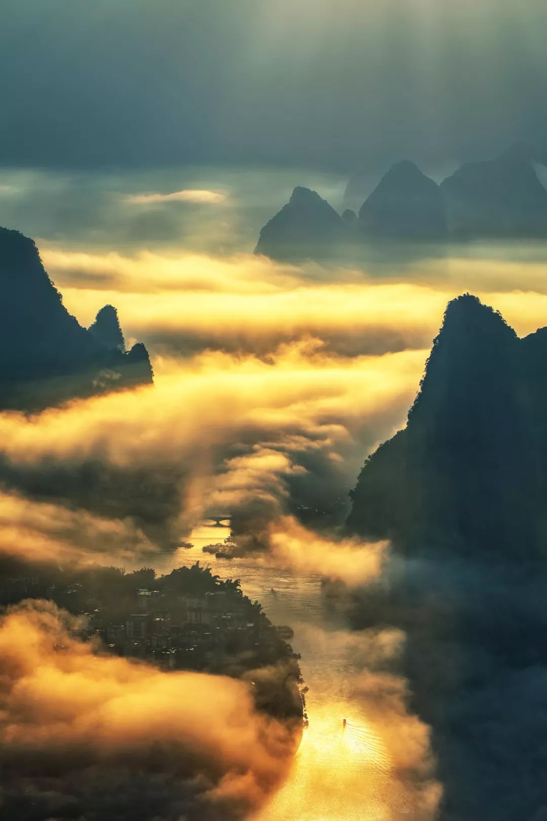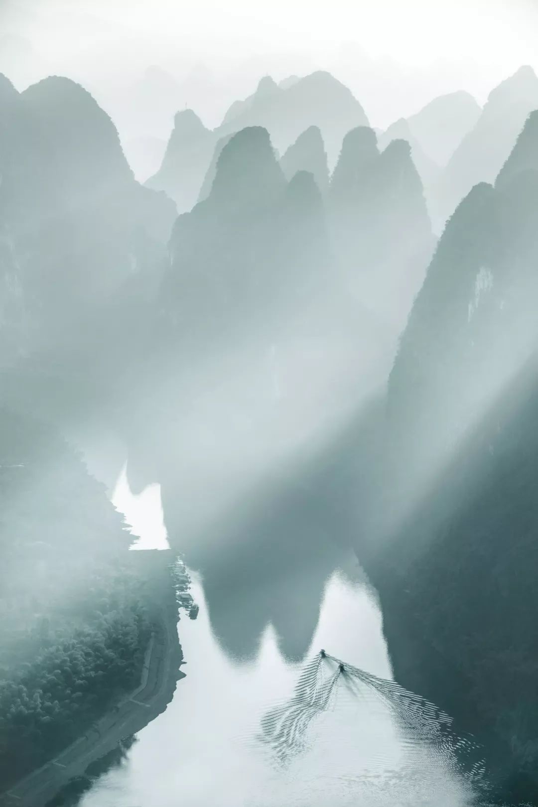 要是有降雨,对于游客出行是个麻烦事,但对于摄影人来讲,最理想不过了。降雨过后云雾弥漫桂林山间,我会使用无人机航拍,在山间低飞穿行而过,云雾犹如中国古典的屏风,桂林山水藏匿其中,犹抱琵琶半遮面。