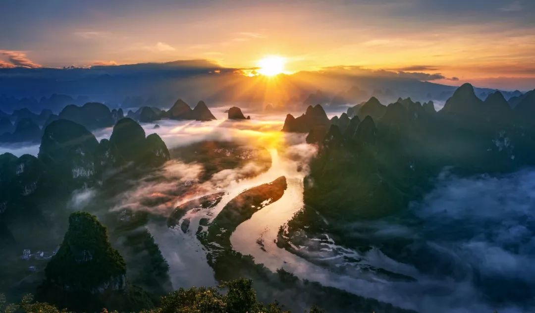 阳朔山水甲桂林,桂林山水的精华在阳朔。相公山是桂林阳朔著名的日出观光点,想要观看日出,可以登山20分钟,若是下雨过后拍摄,云雾缭绕,宛若仙境。要是不想登山,在山脚下放飞无人机亦可拍摄到你心目中的景色,山水的神韵能被无人机的航拍镜头表现得淋漓尽致。