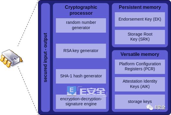 E百科:TPM(Trusted Platform Module)安全芯片是指符合TPM(可信赖平台模块)标准的安全芯片,它能有效地保护PC、防止非法用户访问。是属于负责存储各类关键性数据(包括密码、证书以及加密密钥)的安全密码处理器国际标准。