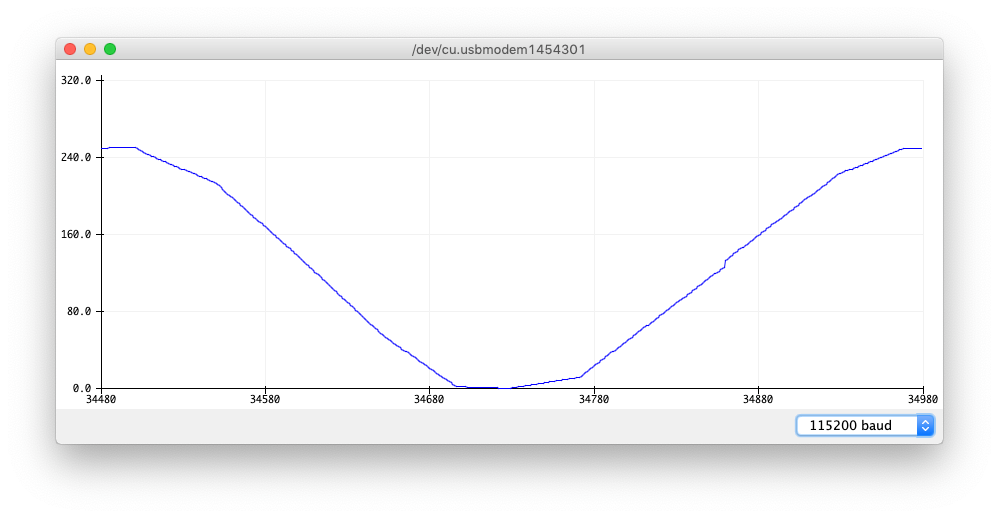 Arduino IDE 包含用于捕获和显示通过串行端口。其中一种工具 “串行绘图仪 (Serial Plotter)” 可以显示其接收到的值的图形通过串行。通过从我们的代码中输出亮度值流,我们将能够看到他们的图表。接下来我们就完成整个运行过程。