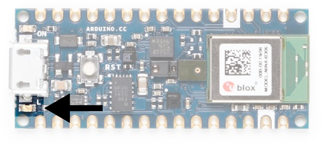 各种各样的 Arduino 板都有不同的功能。并非全部的开发板都能够运行 TensorFlow Lite for Microcontrollers。我们推荐的是 Arduino Nano 33 BLE Sense 开发板。其中这款开发板的 LED 类如下图所示: