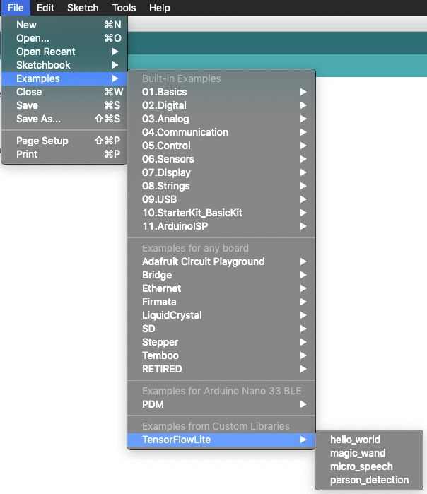 这一篇文章,介绍如何把模型代码加载到 Arduino 硬件上并且执行。同时 TensorFlow Lite 会定期添加对新设备的支持,因此如果您要使用的设备未在此处列出,可以访问此网址获取最新的信息,以及查看更新的部署说明。