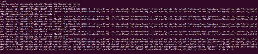 程序编译正常。编译成功,生成的用于 PC 机上执行的二进制文件在以下 tensorflow 源码根目录以下的这个目录:tensorflow/lite/micro/tools/make/gen/.