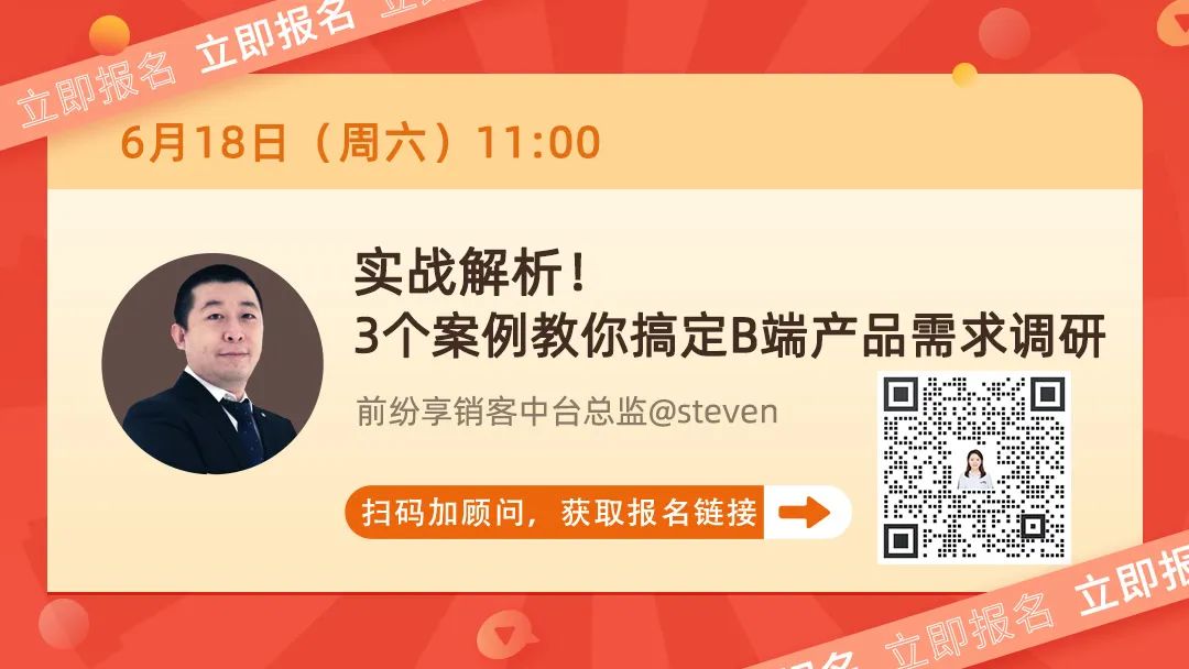 本周六上午,前纷享销客中台总监@steven老师带你一一攻破B端产品需求调研难题: