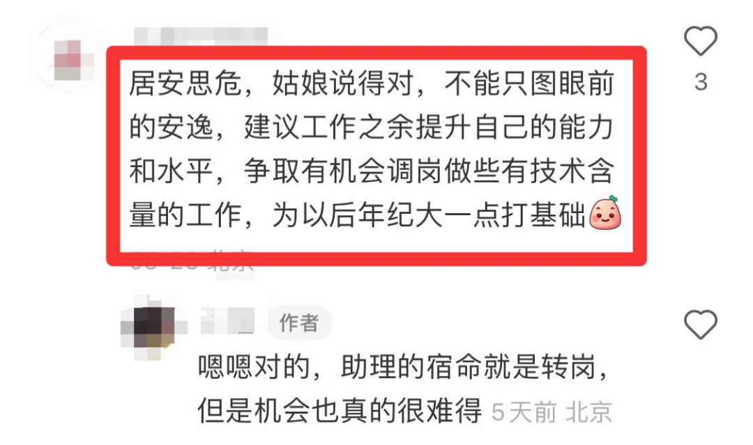 也正如这位北京姑娘自己分析的,岗位缺少核心竞争力,不适合长期发展。