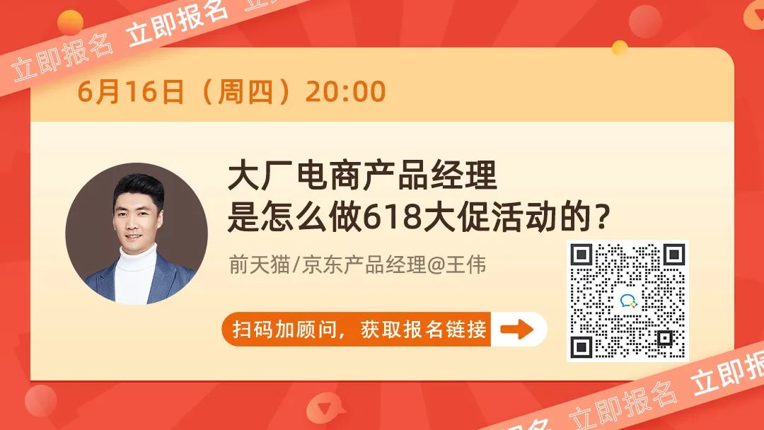 6月16日(周四)晚8点,前天猫/京东产品经理@王伟,将以大厂电商618大促与双11产品案例,解析大厂电商产品经理能力体系,助你系统入门电商产品经理!