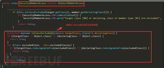 _memberAccess是OgnlContext中的一个属性,这是一个权限类SecurityMemberAccess继承了DefaultMemberAccess。其中的isClassExcluded就是循环的判断是否。