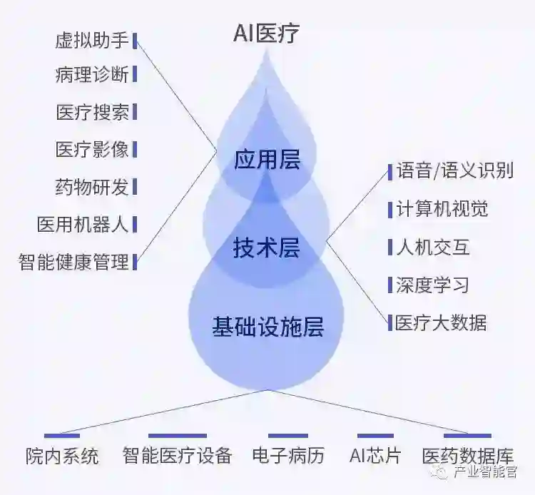 应用层:是指人工智能与不同细分领域的结合,以解决医疗行业中的某种业务需求,如智能诊断、药物研发、智能健康管理、智能语音等医疗场景。