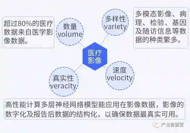 从细分领域融资数量图看出,医疗影像占比较多,为什么会发生这样的状况?影像具有4V性(volume数量、variety多样性、velocity速度、veracity真实性),4V的属性更适合其AI的发展。