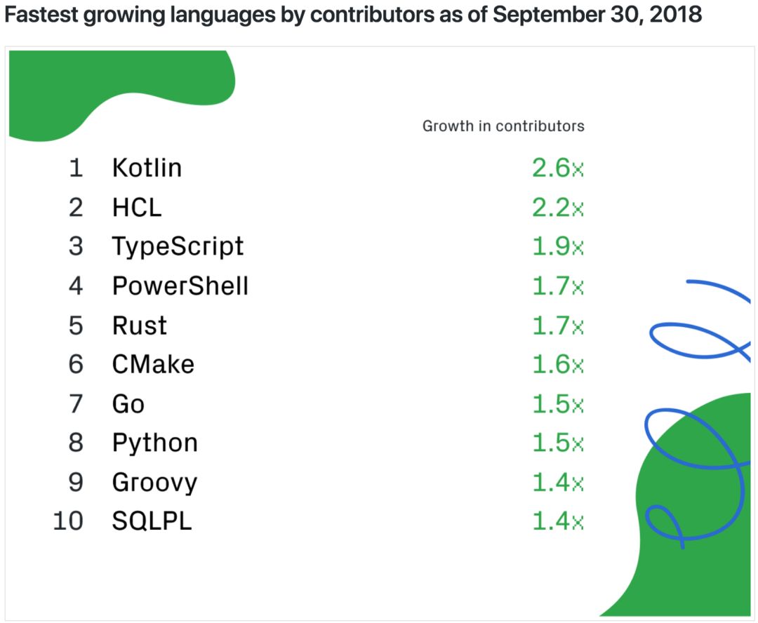 TypeScript 是增长最快的语言之一,也是目前领先的可编译为 JavaScript 的语言。