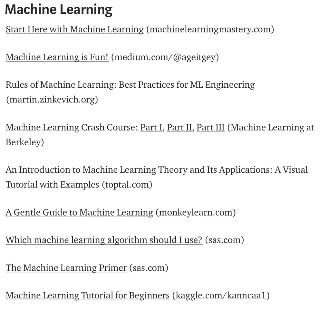 鉴于数量较多,每一部分的学习资源我们只给出了标题与来源,想了解更多大家可以从原文中进行访问。