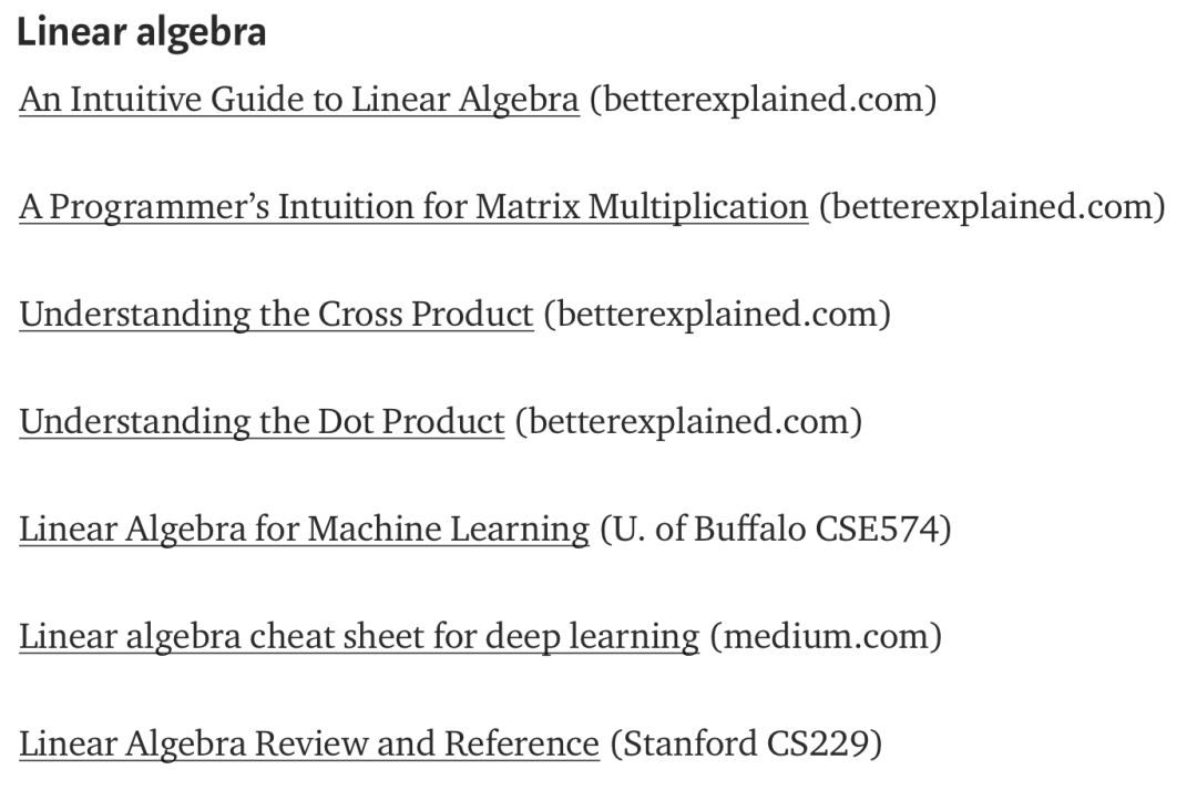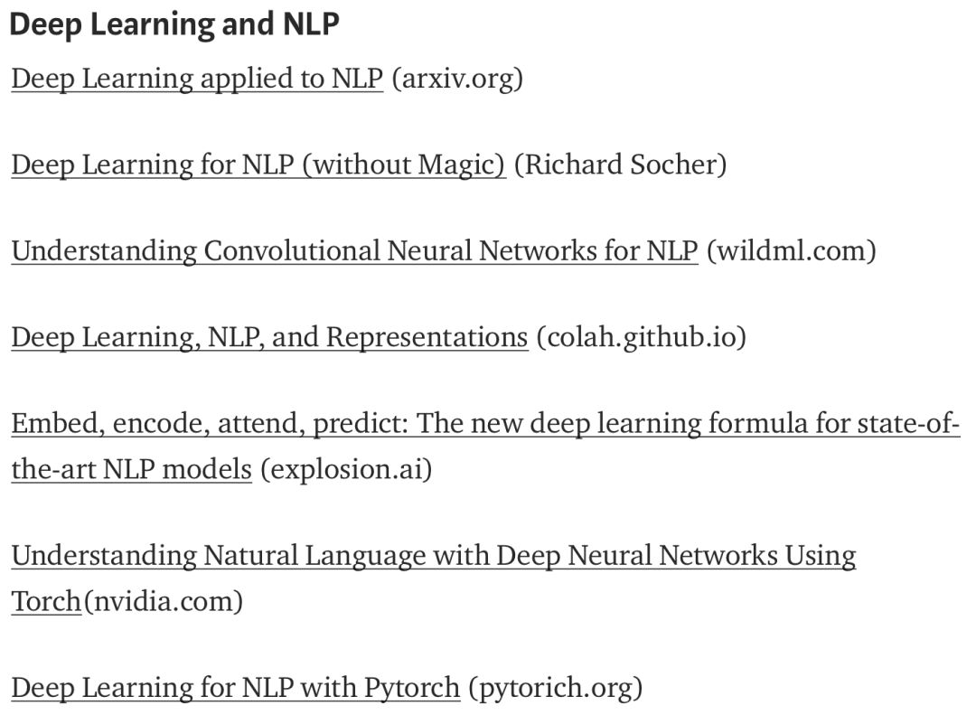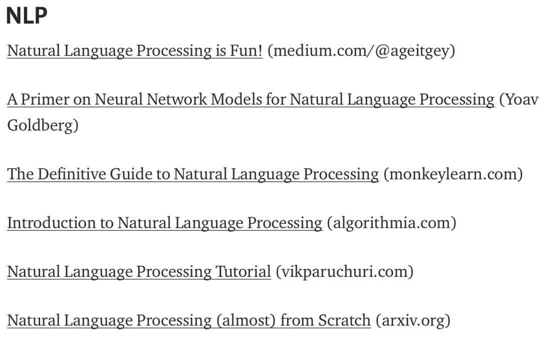 为什么说这里面的内容是自己在所有的资源中挑选出来最好的?首先这份收藏清单并不是把在网上可以搜索到的所有学习资料直接罗列,作者主要从机器学习、NLP、Python 和数学四部分的内容介绍给大家,并且每个部分细分了不同的主题,每个主题有 5~6 个学习资源,力求从不同角度与不同的呈现形式(如有教程、幻灯片、博客文章等)使内容具有多样性。