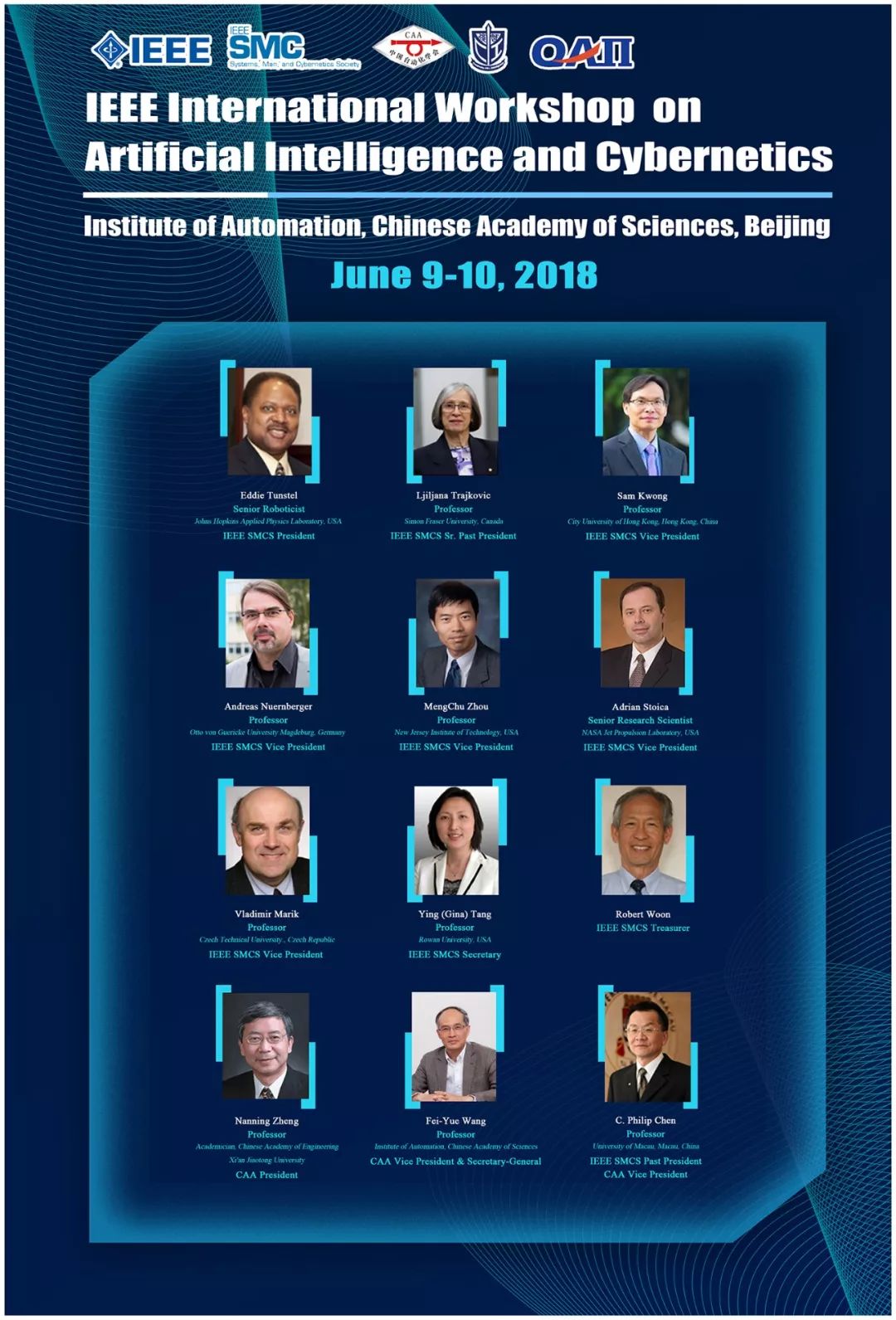 IEEE SMC学会(IEEE System, Man, and Cybernetics Society)将于2018年6月9-10日在北京召开执委会,并举办IEEE 人工智能与控制论国际研讨会(IEEE International Workshop on Artificial Intelligence and Cybernetics)。研讨会由中国自动化学会、中国科学院自动化研究所复杂系统管理与控制国家重点实验室、青岛智能产业技术研究院联合承办。现将有关事宜通知如下: