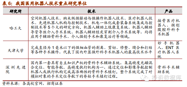 (3)国内重点医用机器人公司/研究机构:医疗技术商业化有待提高